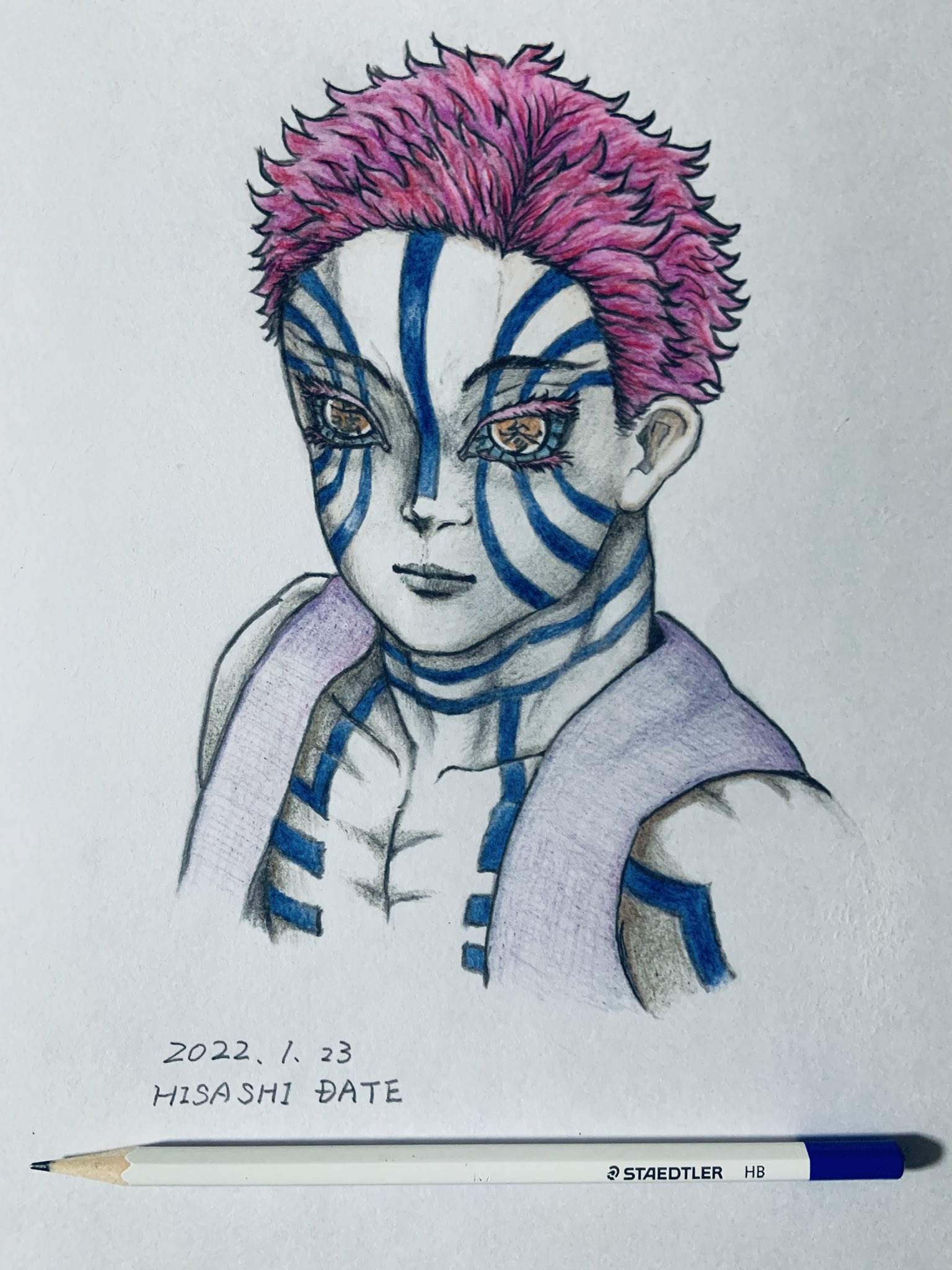 伊達喜旨 鬼滅の刃のリアルタイプ猗窩座 鉛筆と色鉛筆で描いた ちょっとフリーザっぽい 鬼滅の刃 猗窩座 イラスト フリーザ T Co Qy29czmnel Twitter